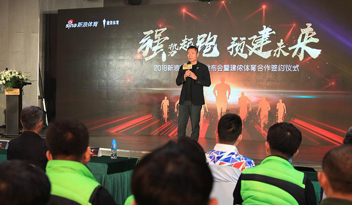 在發布會(huì)上(shàng),建侬體(tǐ)育總經理(lǐ)王唯丞上(shàng)台分享了以“創新的跑團組織和(hé)創新的團隊跑賽制(zhì)“為(wèi)主題的發言。介紹了建侬體(tǐ)育的轉型發展之路及與新浪體(tǐ)育今後的深度合作(zuò)方向。