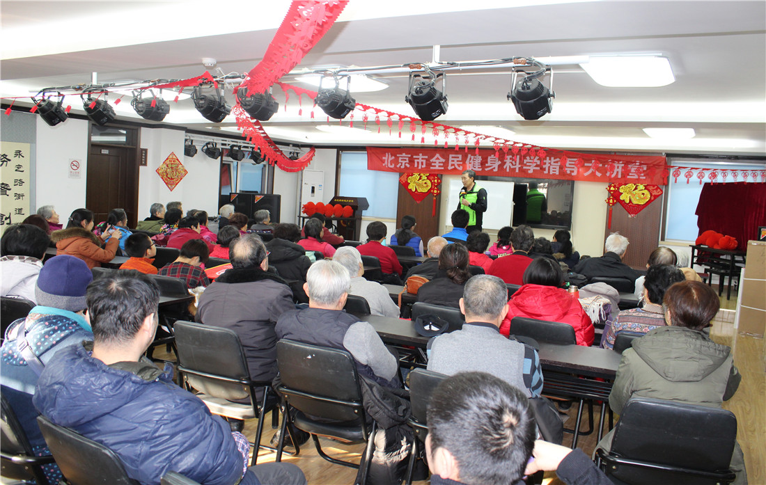 2018年1月19日,全民健身科學指導大(dà)講堂走進永定路街(jiē)道(dào),由國內(nèi)知名健身運動專家(jiā)趙之心主講全民健身科學指導大(dà)講堂之《科學鍛煉》-- 遠離慢病專題及現場(chǎng)展示慢病預防操!共有(yǒu)60人(rén)參與!